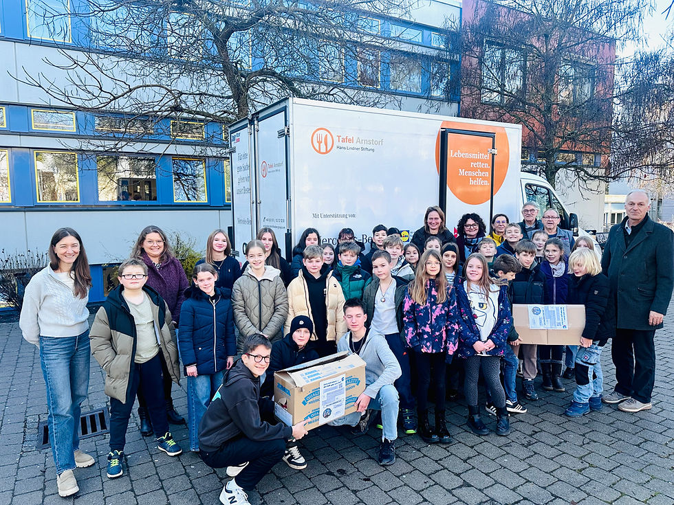 Unter dem Motto Jeder gibt, was er kann sammelten die Klassen der Realschule über mehrere Wochen haltbare Lebensmittel und Konserven, um Menschen in der Region zu unterstützen, die aktuell auf Hilfe angewiesen sind. Die Aktion fand erneut in enger Zusammenarbeit mit der Tafel Arnstorf und der Hans Lindner Stiftung statt. Knapp 50 Kisten kamen schlussendlich zusammen, gefüllt mit haltbaren Lebensmittel wie Mehl, Zucker, Öl, Kaffee, Nudeln, Babynahrung oder ähnlichen Produkten.